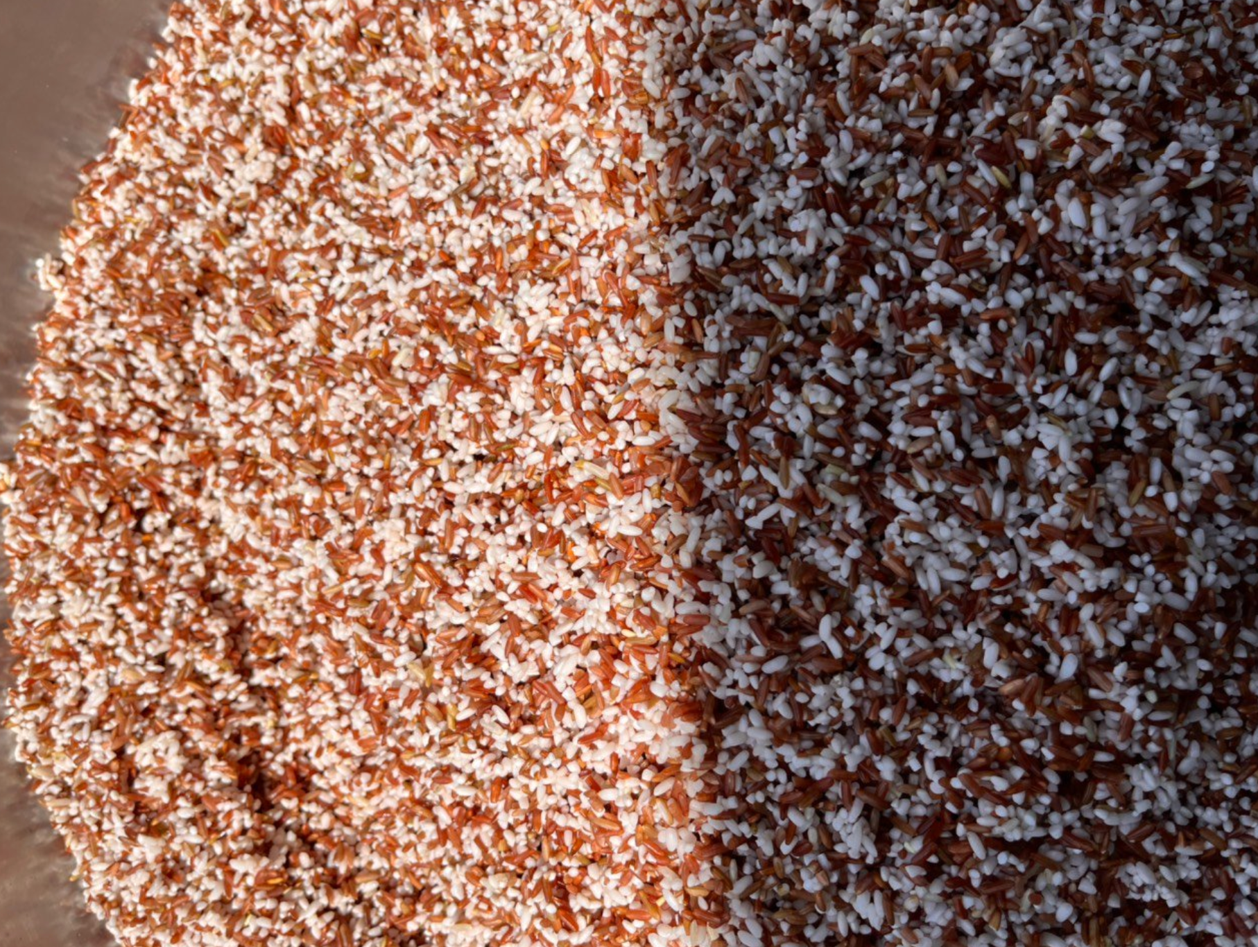Bún có 2 tông màu đỏ khác nhau 1 chút nhưng vị không khác nhau. Do chúng tôi tự giữ giống cho mùa sau nên gạo giống huyết rồng có lẫn gạo lứt đỏ.