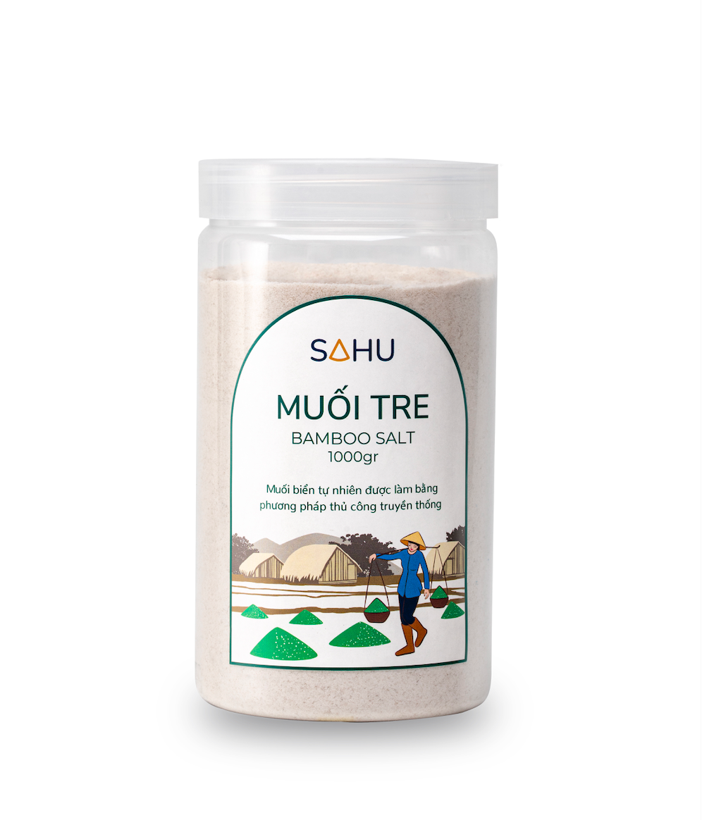 Phương pháp làm muối tre có nguồn gốc từ Hàn Quốc, nung muối biển trong ống tre tươi đầu bịt đất sét. Muối tre Sahu có mùi thơm thanh khiết từ ống tre, có vị mặn dịu, hậu ngọt  & giàu khoáng chất từ muối biển, tre & đất sét.